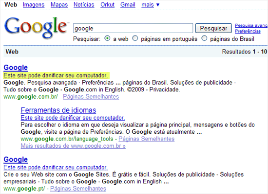 Em 2009, o Google marcou acidentalmente todos os sites como maliciosos por 40 minutos.