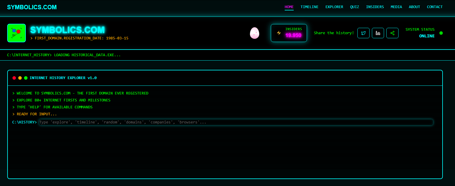 O primeiro domínio da história foi symbolics.com registrado em 1985.